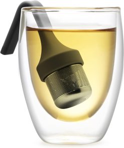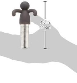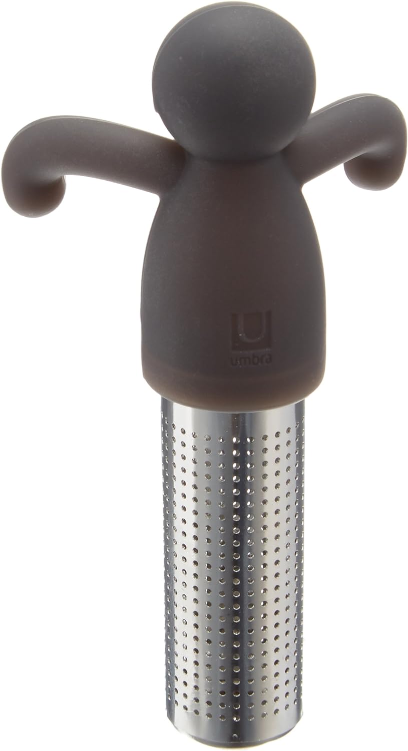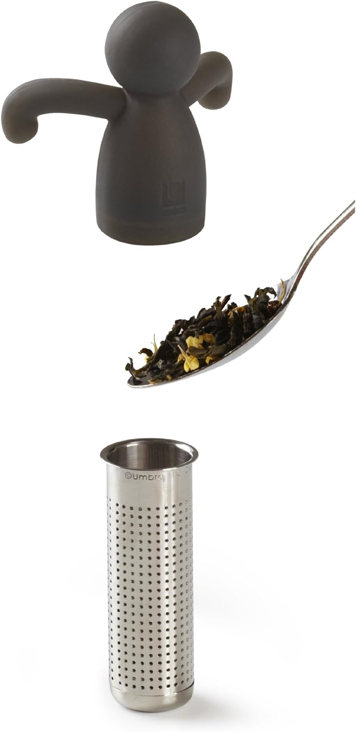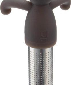 Infuseur à thé Buddy Noir Umbra. Profitez d’un moment amusant et reposant grâce à cet infuseur à thé en silicone noir et acier inoxydable. Séparez les deux parties et versez y du thé, il ne vous reste plus qu’à l’accrocher au bord de votre mug et à le déguster. Son récipient en acier est conçu de façon à minimiser la dispersion du thé dans l’eau pour profiter comme il se doit votre thé.