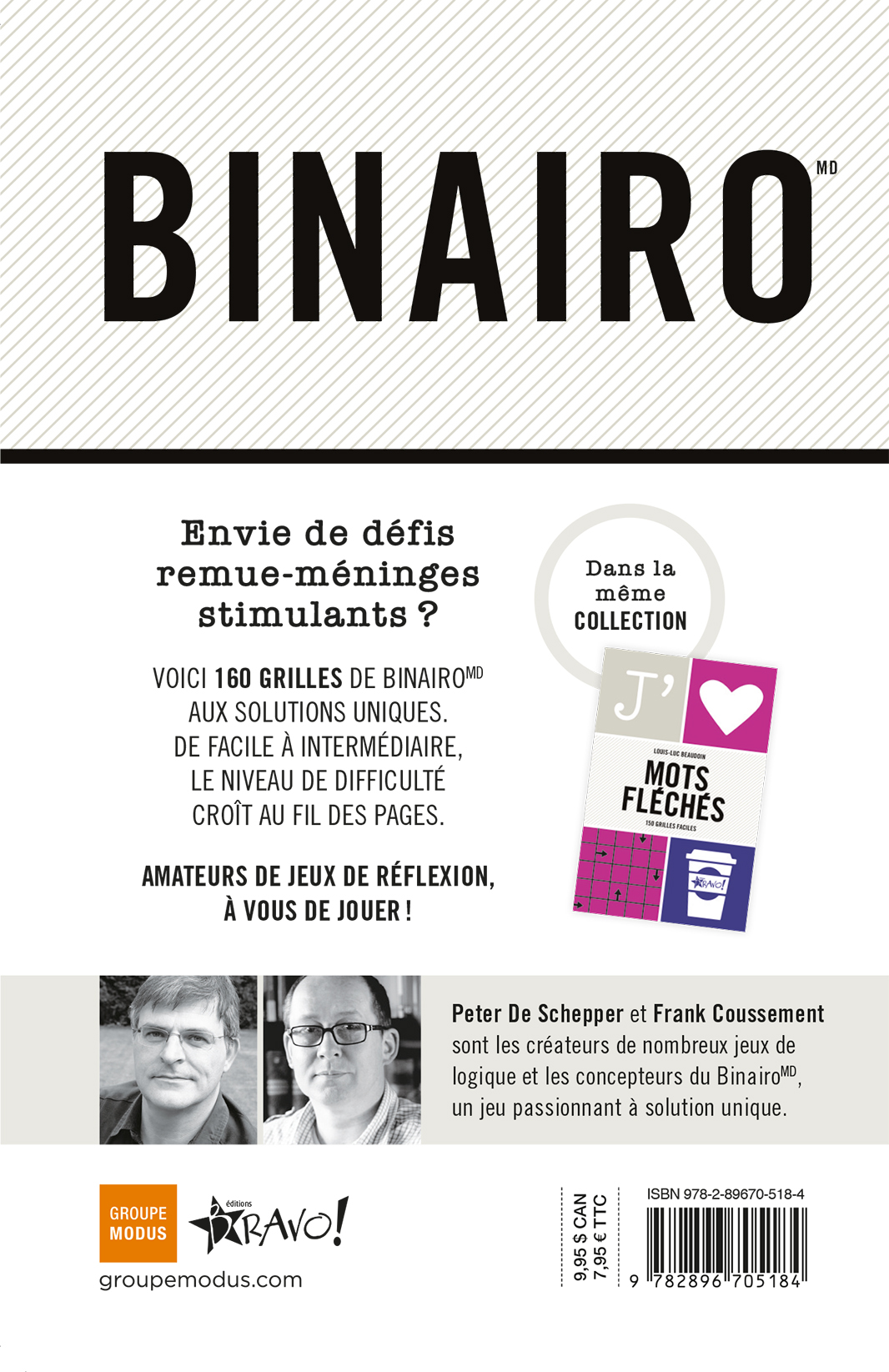 Voici 160 grilles de BinairoMD aux solutions uniques. De facile à intermédiaire, le niveau de difficulté croît au fil des pages.