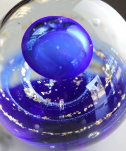Prouesse de maîtrise, l’artisan verrier réalise ici une triple inclusion de couleur dans la masse de cristal. Tel un tourbillon, ces trois « poumons » de couleur laisse libre choix d’interprétation.